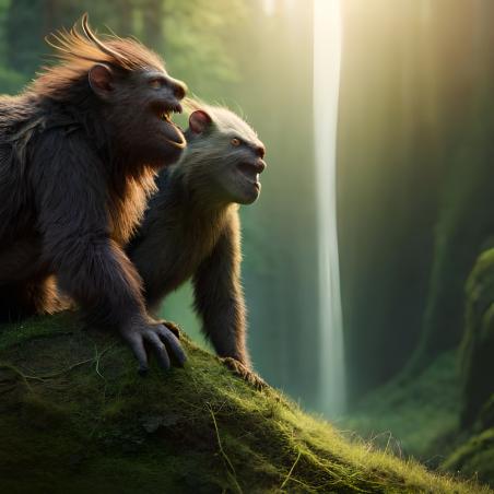 «Ronroneamos y lamemos nuestros pelajes cariñosamente» mientras nos armamos de paciencia. Los capturamos hace unos días y desde entonces los alimentamos para que engorden. La oscuridad nos ayudó a atraparlos. Estaban caminando por nuestro territorio y vimos la oportunidad. Nunca habíamos capturado un espécimen como ellos y el líder dijo que era una buena oportunidad para mostrar nuestro poder a los demás habitantes del bosque. Hemos rodeado el agujero que hicimos como trampa y observamos sus caras de terror. Tienen buena pinta. Aún no conocemos el sabor de la carne humana.