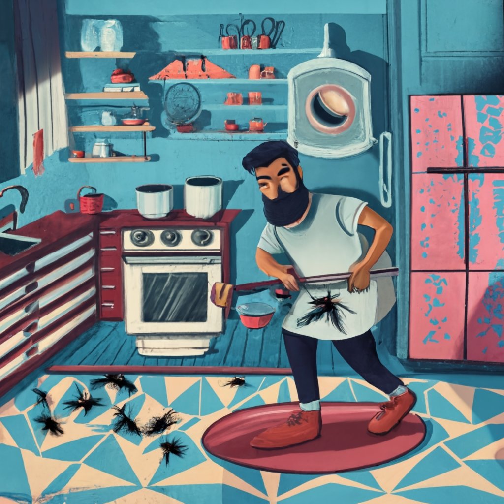 Armado con un trapo de cocina se dispuso a cazar moscas. La primera que se posó en la encimera se convirtió en la víctima inicial. Sigiloso, avanzó hasta la posición más ventajosa, perpendicular a la placa de inducción, armó el brazo y con un movimiento rápido y certero impactó en el insecto dejándolo grogui en el suelo. Se acercó a la mosca y la tomó con el índice y el pulgar a modo de pinza. Aún se movía el díptero y lo arrojó directo al inodoro.