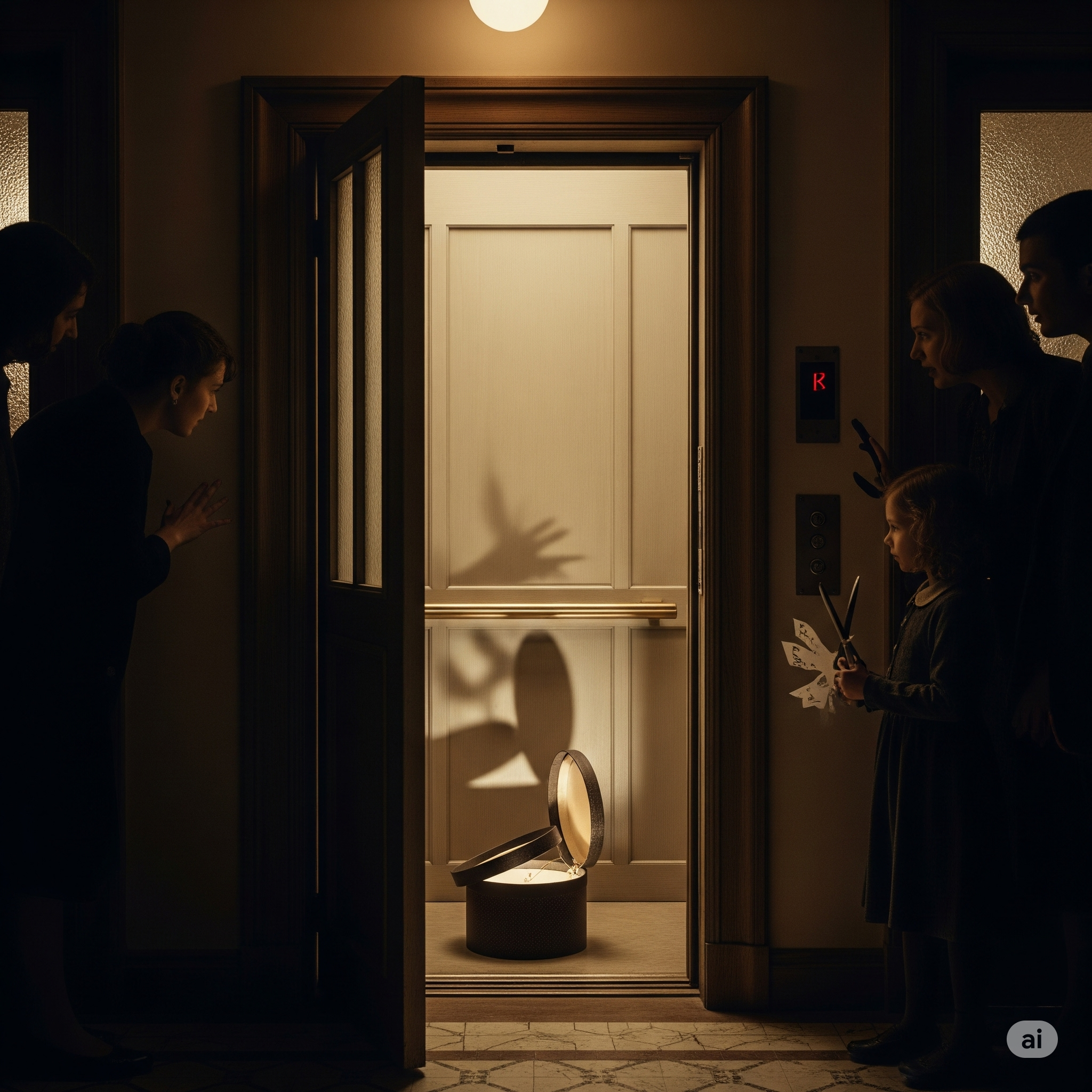 En el habitáculo del elevador, una sombrerera abierta. Mientras una vecina daba aire y ayudaba a Aurora, me acerqué, no sin temor, hasta el ascensor.